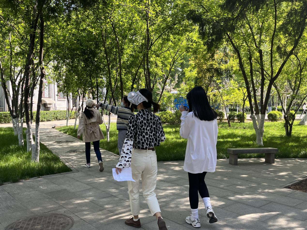 之后,各团队依据宫格线索穿梭于校园各处,参与党史知识问答、学习防疫宣传口号。随后,各组队员通力合作、制定战术,前往规定地点合照、记录植被线索、寻找“砥砺前行”标语,集齐“不”“忘”“初”“心”四字勋章。